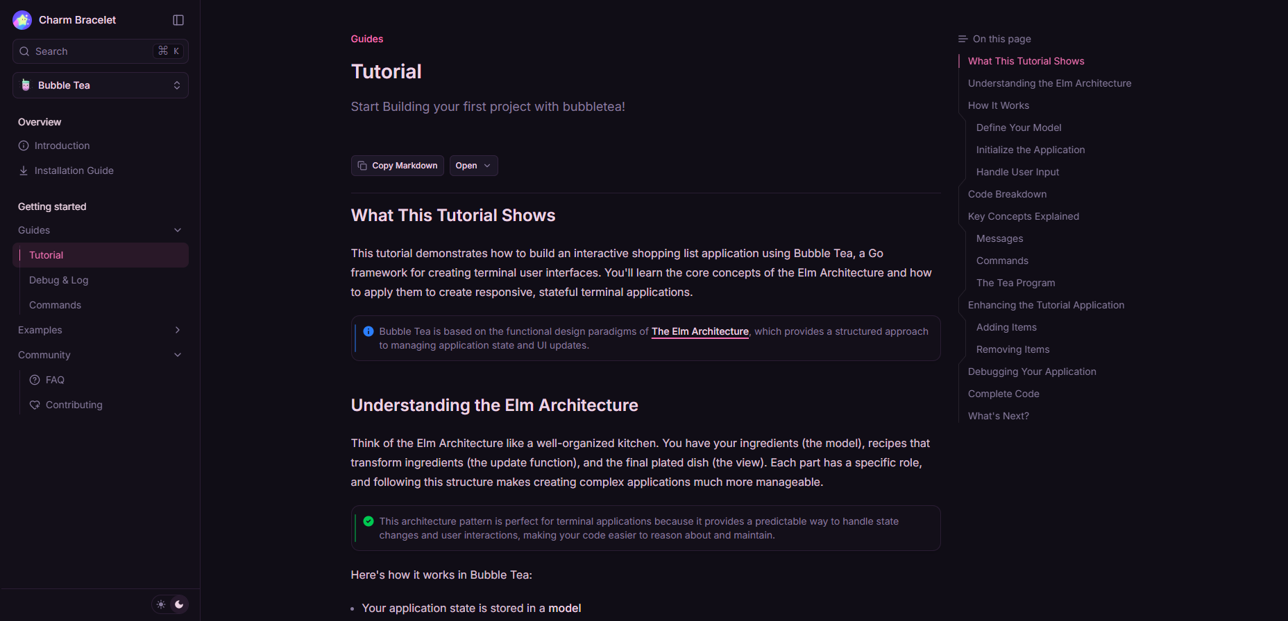 An unofficial charmbracelet documentation for bubbletea and lipglos etc..